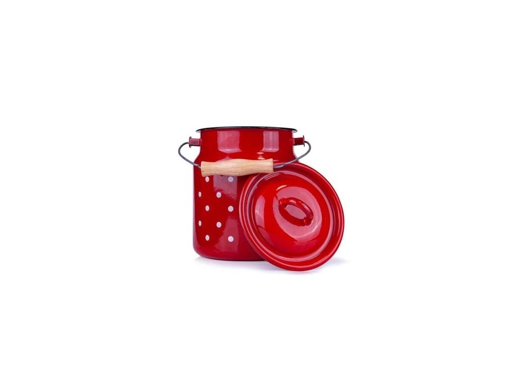 Lesklý červený smalt s bílými puntíky je ikonou českého retro stylu, který se hodí nejen do kuchyně, ale i jako doplněk na chalupu či zahradu.