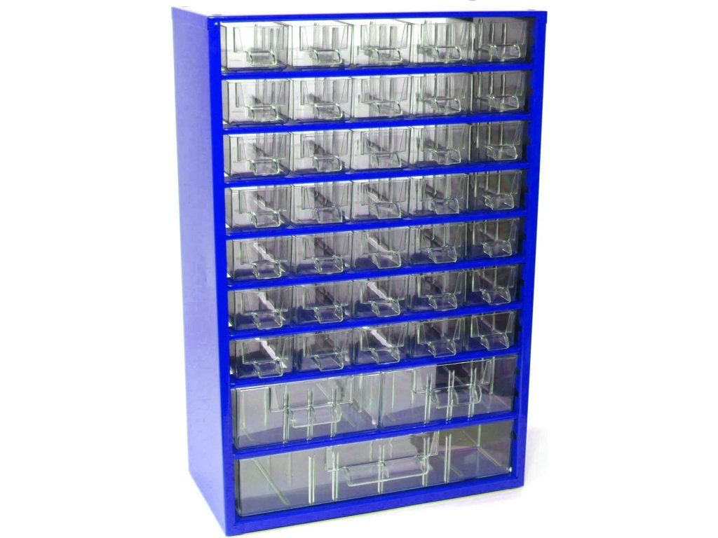 Ukládací skříňky se zásuvkami jsou vhodné pro přehledné skladování drobných předmětů a součástek. Skříňky je možné volně postavit nebo pověsit na stěnu. Vzhledem k tomu, že dno všech skříněk je rozměrově stejné (306 x 155 mm), lze je libovolně stavět na sebe a kombinací několika skříněk lze vytvořit kompaktní celek.