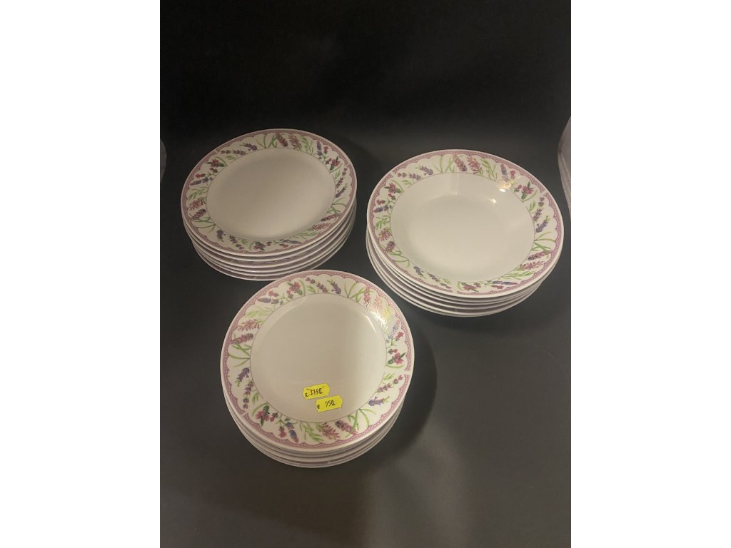Vhodné do myčky nádobí a mikrovlnné trouby, 6x hluboký talíř průměr 23cm, 6x plytký talíř průměr 23cm, 6x dezertní talíř průměr 19cm.