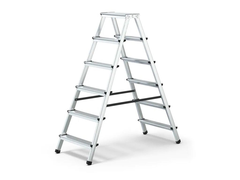 Oboustranný hliníkový žebřík se 2 × 6 stupínky je ideální volbou pro každodenní použití doma i na pracovišti. Nabízí maximální zatížení 125 kg, stabilní konstrukci a bezpečné provedení s protiskluzovými prvky. Díky nízké hmotnosti je snadno přenosný a skladný.