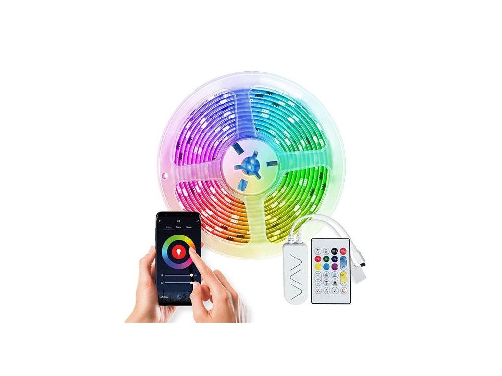 - LED SMART WIFI pásek je ovládaný chytrým telefonem pomocí aplikace v ČJ, AJ a dalších jazycích. Podporuje Wifi 2,4GHZ, Androidd 4.1 a vyšší a IOS 8.0 a vyšší. Umožňuje nastavovat různé barvy světla (RGB), odstíny bílé (3000-6500K) a intenzitu světla. LED pásek lze ovládat i dálkovým ovladačem, který je součástí balení.