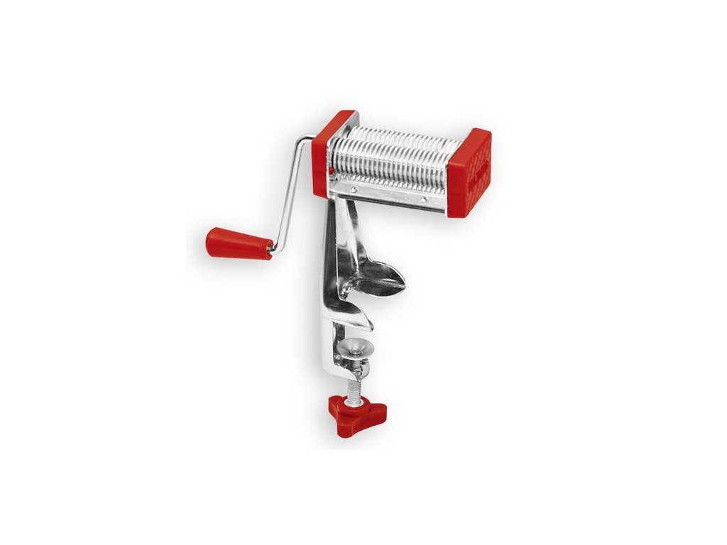 Mechanický kovový strojek pro krájení stejnoměrných vlasových nudlí do polévky. Připravené vyválené těsto nakrájené na 6 cm široké pruhy stačí vložit mezi ozubené části a otáčením klikou dosáhnete stejnoměrných polévkových nudlí, tenkých cca 1 mm. Délku můžete zvolit dle libosti. Jsou vhodné k sušení, ale i k okamžitému vaření ve vývaru. Strojek se upíná k pracovní desce nebo stolu šroubem, po použití jej stačí vyčistit kuchyňským ubrouskem nebo štětcem a uložit.
