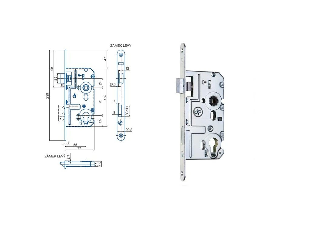 Zámek zadlabací K 221 L Zn bílý 72/77 vložkový Hobes
